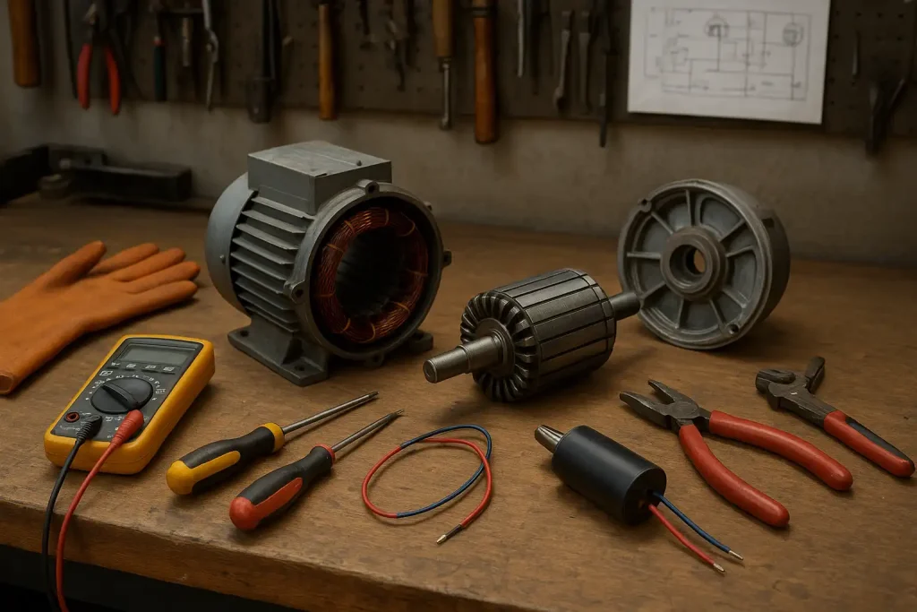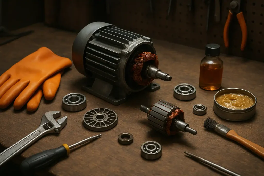 تعمیر الکتروموتور خانگی؛ راهنمای کامل تعویض یاتاقان و سیمپیچ