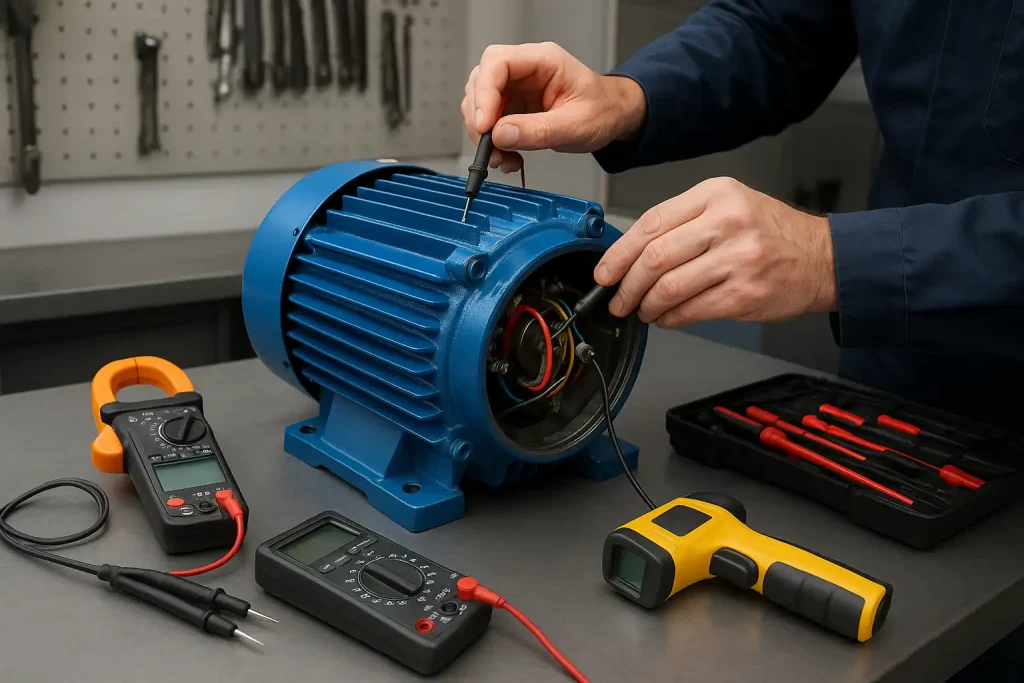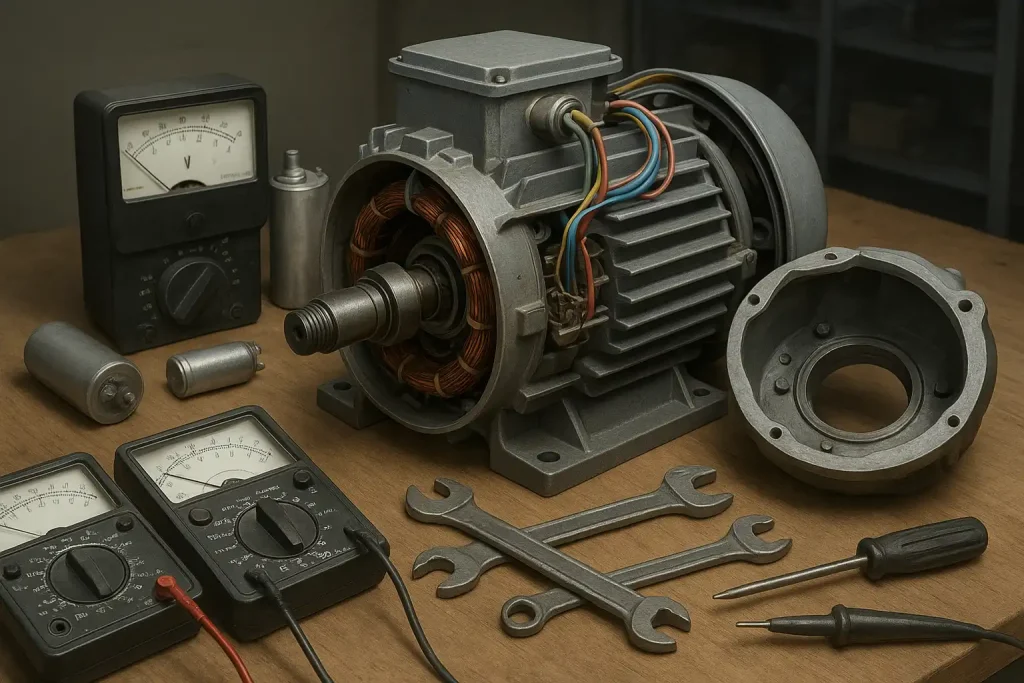 تعمیر الکتروموتور با افت توان و دور پایین نیازمند تشخیص دقیق مشکلات الکتریکی و مکانیکی است. عوامل الکتریکی شامل نوسانات ولتاژ، خرابی خازن و ایرادات در سیمپیچی است که باعث کاهش گشتاور و کند شدن موتور میشوند. مشکلات مکانیکی مانند فرسودگی بلبرینگها، اصطکاک شفت و بار اضافی نیز عملکرد موتور را کاهش میدهند. فرآیند تعمیر شامل بررسی ولتاژ ورودی، تست و تعویض خازن، بازبینی سیمپیچی، روغنکاری و تعویض قطعات فرسوده است. استفاده از اینورتر و سیستمهای کنترل هوشمند به بهبود عملکرد کمک میکند. نگهداری پیشگیرانه با سرویس دورهای، نصب تجهیزات حفاظتی و آموزش اپراتورها بهترین راه برای جلوگیری از افت توان و افزایش عمر موتور است. در موارد پیچیده، تعمیر تخصصی با قطعات اورجینال و ضمانت کیفیت توصیه میشود. انتخاب مرکز تعمیر معتبر با سابقه، ابزار دقیق و پشتیبانی از اهمیت بالایی برخوردار است تا عملکرد بهینه و طول عمر الکتروموتور تضمین شود.