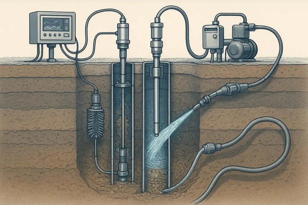 ایرلیفت یکی از روشهای مؤثر و کمهزینه برای احیای چاههای آب است که با تزریق هوای فشرده به انتهای چاه، رسوبات، شن و ماسه را به سطح منتقل میکند و مسیر جریان آب را باز مینماید. این روش بدون آسیب به جدار چاه و نیاز به حفاریهای سنگین، سرعت بالایی در بازگرداندن ظرفیت آبدهی چاه دارد و برای چاههایی با انسداد ناشی از مواد درشتدانه مانند شن و قلوهسنگ مناسب است. اجرای ایرلیفت شامل بررسی اولیه، انتخاب پمپ و کمپرسور مناسب، تزریق هوا و نظارت بر خروج رسوبات است. مزایای ایرلیفت شامل کاهش هزینهها، عدم نیاز به تجهیزات سنگین، سرعت اجرا و افزایش عمر مفید چاه است، اما برای چاههای با جدار آسیبدیده یا رسوبات چسبنده کمتر موثر است. استفاده از این روش نیازمند تجهیزات تخصصی و حضور کارشناسان مجرب است تا از آسیب به ساختار چاه جلوگیری شود. ایرلیفت گزینهای ایدهآل برای بازگرداندن عملکرد چاه در زمان کوتاه و با هزینه کمتر نسبت به روشهای سنتی مانند حفاری عمیق به شمار میآید. برای انتخاب بهینه، بررسی شرایط چاه و مشورت با متخصصان توصیه میشود.