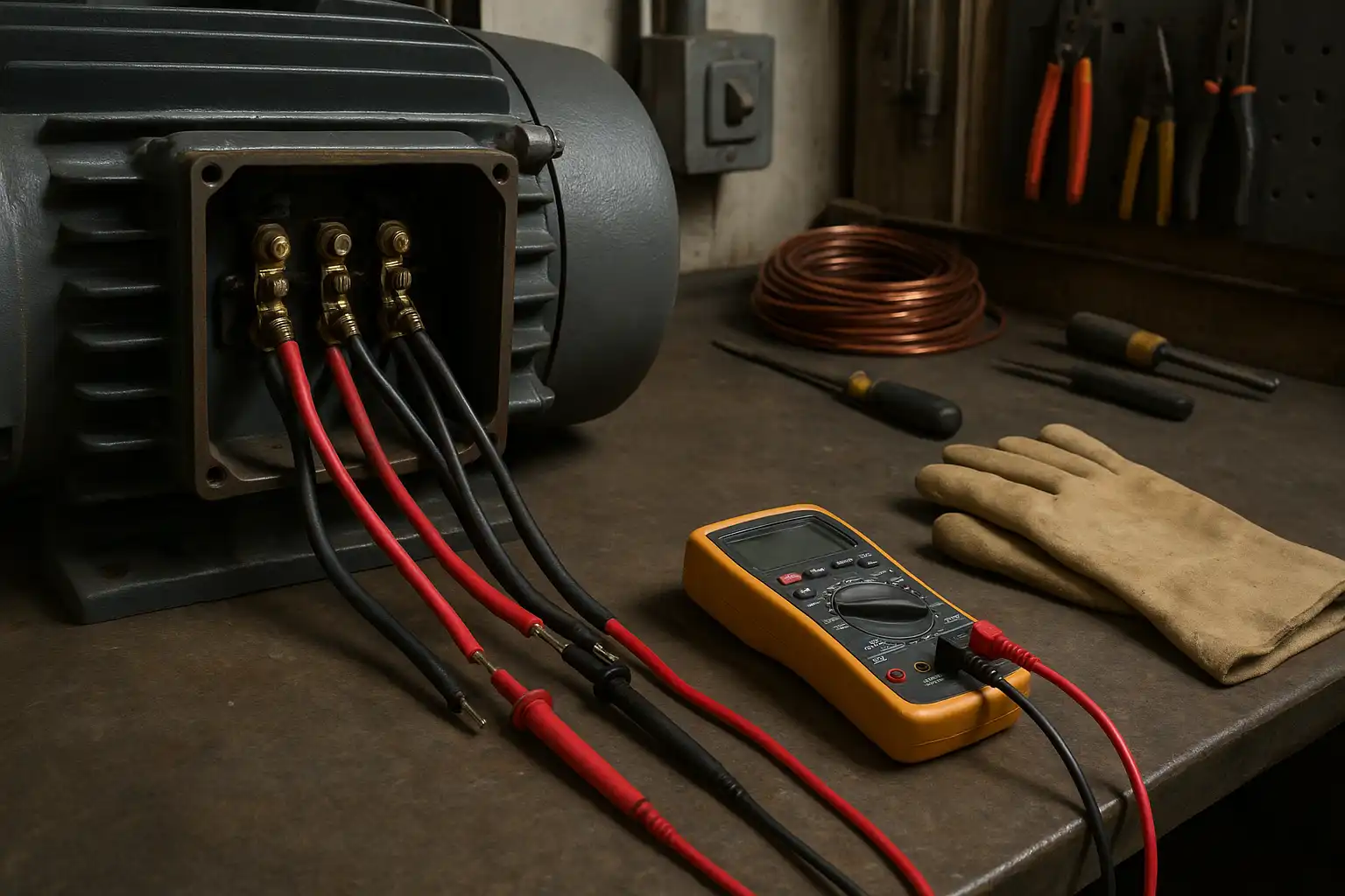 برای شروع، مطمئن شوید که برق الکتروموتور به طور کامل قطع شده است. سپس شینهها یا تختهکلم را باز کنید تا به سرهای سیمپیچ دسترسی داشته باشید. در این مرحله، به یک اهممتر دیجیتال نیاز دارید. اهممترهای برندهایی مثل یونیتی یا مستک برای کاربردهای خانگی و صنعتی استفاده میشوند.