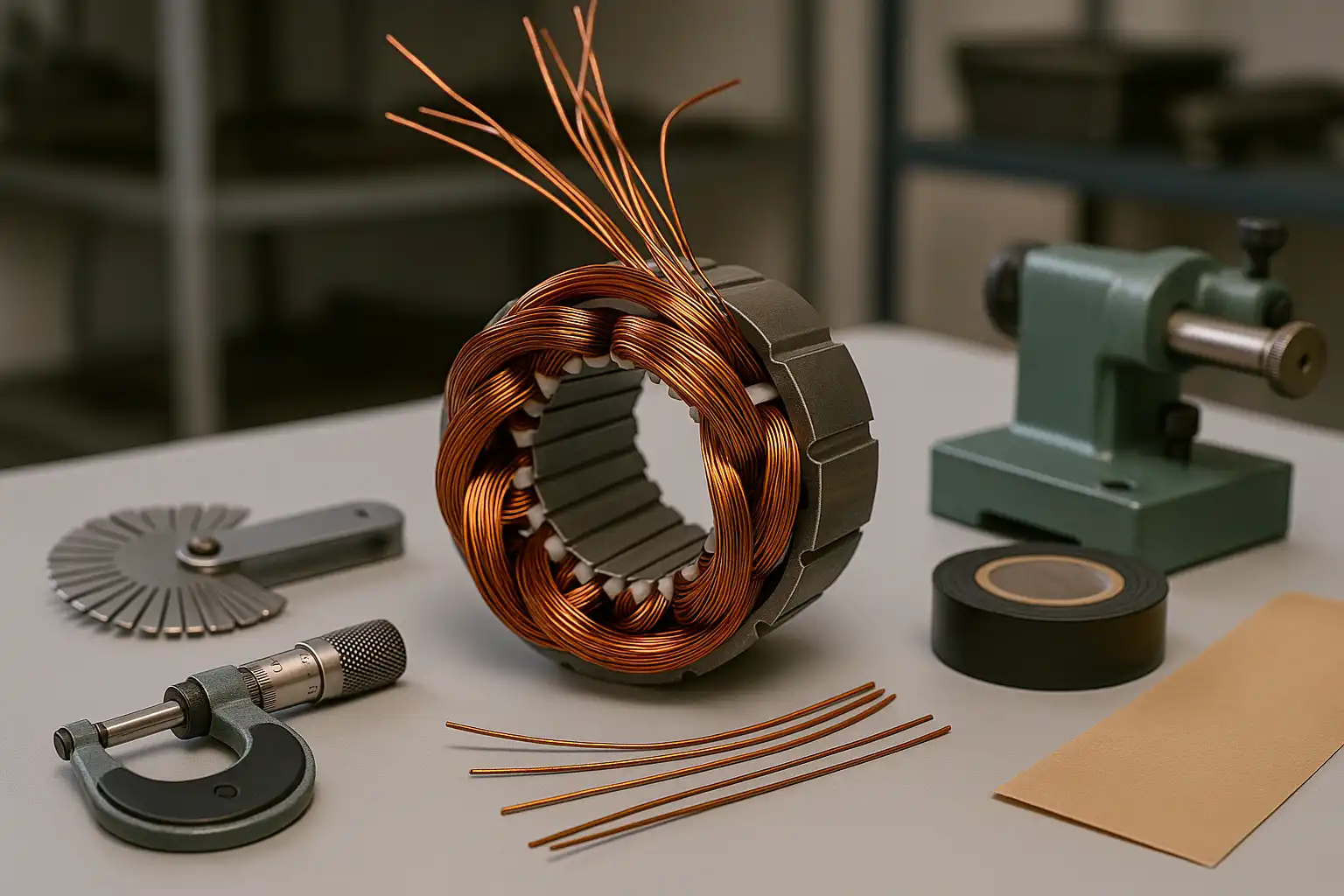 - قطر سیم: هر چه توان موتور بالاتر باشد، باید از سیم ضخیمتری استفاده کنید. انتخاب قطر اشتباه موجب سوختن سریع سیمپیچ میشود.